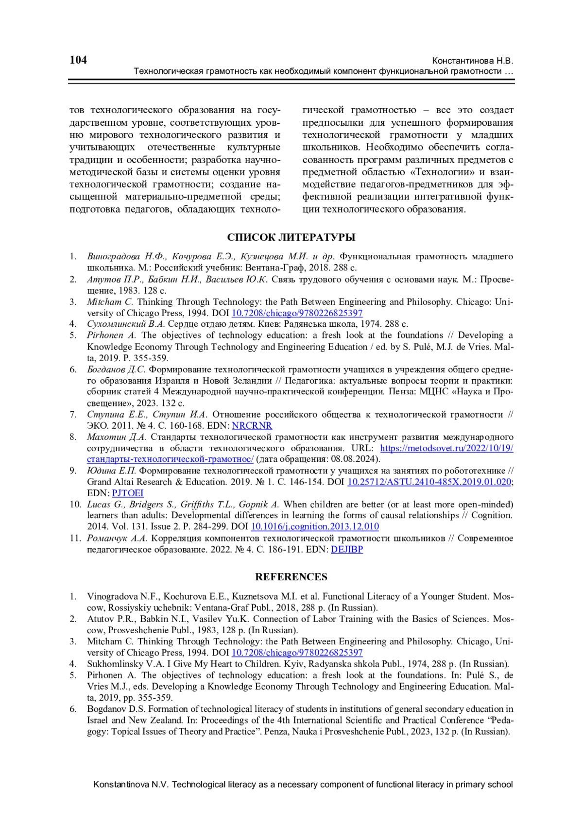 8. Махотин Д.А. Стандарты технологической грамотности как инструмент развития международного сотрудничества в области технологического образования. URL: https://metodsovet.ru/2022/10/19/ стандарты-технологической-грамотнос/(дата обращения: 08.08.2024).