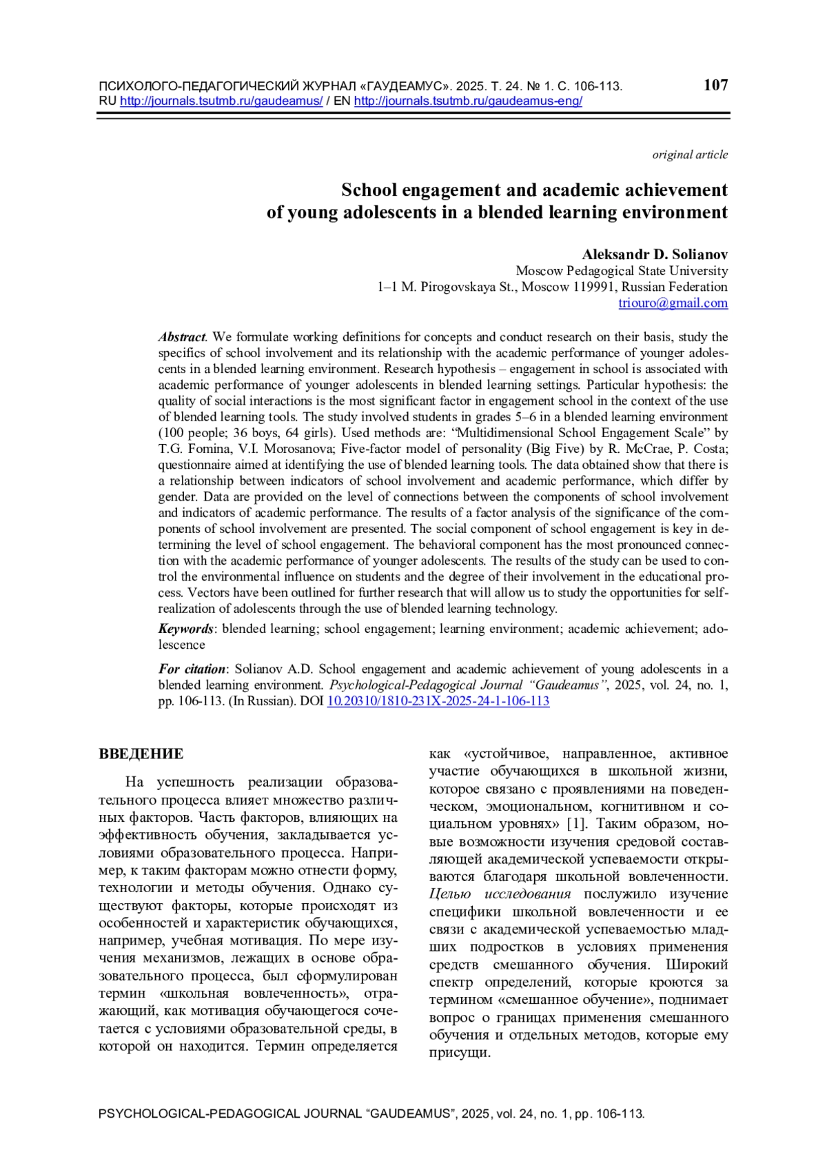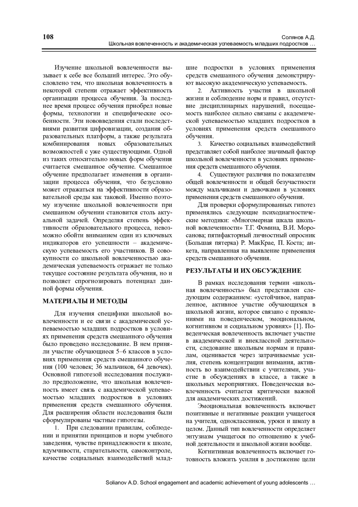 13. Солянов А.Д. Смешанное обучение и учебная мотивация младших школьников: особенности и риски // Науки об образовании в меняющемся мире: перспективы исследований для решения глобальных и локальных проблем: материалы 21 Международной научно-практической конференции молодых исследователей образования. М.: ФГБОУ ВО МГППУ, 2022. С. 823-826.