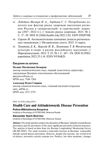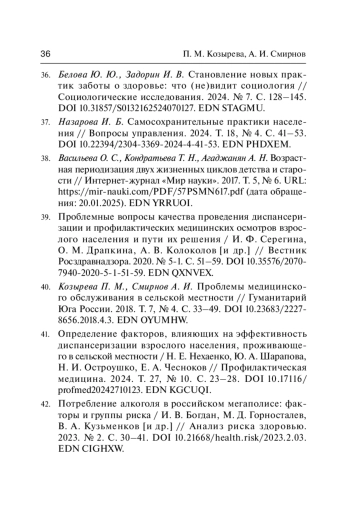 35. Белова Ю. Ю., Задорин И. В. Становление новых практик заботы о здоровье: что (не)видит социология // Социологические исследования. 2024. № 7. С. 128-145. DOI: 10.31857/S0132162524070127
