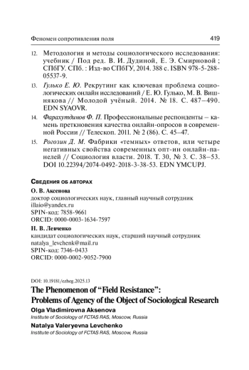 14. Фарахутдинов Ф. П. Профессиональные респонденты - камень преткновения качества онлайн-опросов в современной России // Телескоп. 2011. № 2 (86). С. 45-47.