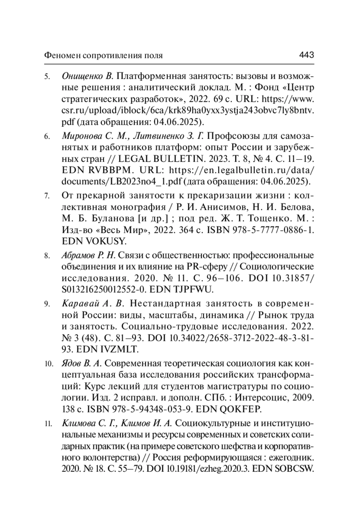 7. От прекарной занятости к прекаризации жизни: коллективная монография / Р. И. Анисимов, Н. И. Белова, М. Б. Буланова [и др.]; под ред. Ж. Т. Тощенко. М.: Изд-во “Весь Мир”, 2022. 364 с. ISBN: 978-5-7777-0886-1