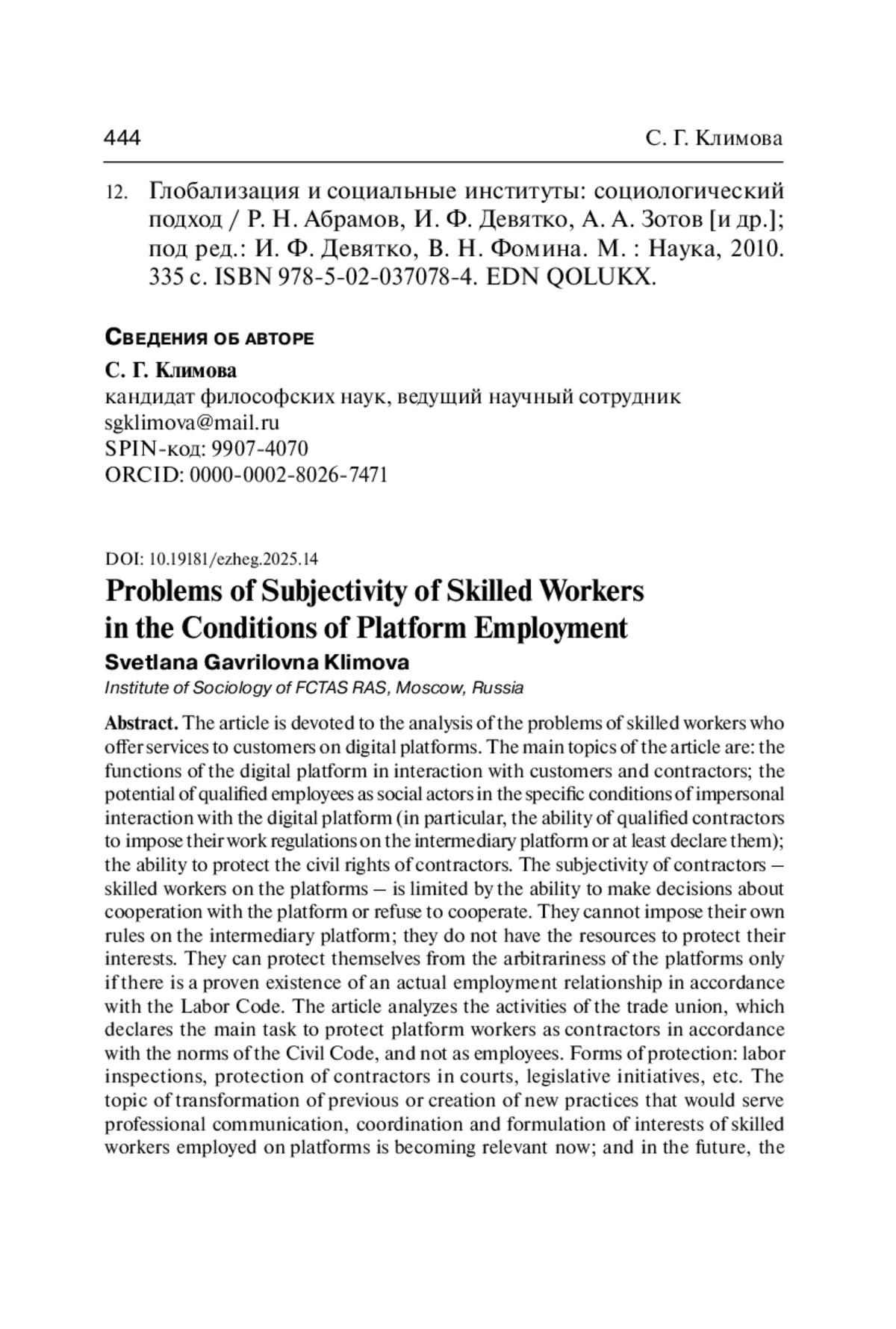 4. Платформенная занятость в России: масштабы, мотивы и барь еры участия: аналитический доклад / О. В. Синявская, С. С. Бирюкова, Е. С. Горват [и др.]; НИУ “Высшая школа экономики”. М.: НИУ ВШЭ, 2022. 978-5-7598-249 4-7. 10.17323/978-5- 7598-249 4-7. URL: https://www.hse.ru/data/2022/07/26/1616950951/NCMU_Platform_Employment_Report_2022.pdf (дата обращения: 04.06.2025). DOI: 10.17323/978-5-7598-2494-7 ISBN: 978-5-7598-2494-7