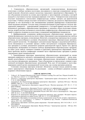 1. Volkova L. M. Transport Education in the Context of Distance Learning: Pros and Cons // Reports Scientific Soci-ety. 2020. No 3-4(24). P. 11-13.