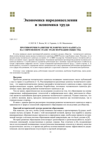 Проблеме развития человеческого капитала посвящено значительное число публикаций у нас в стране и за рубежом Д1–5Ж. Рассматриваются различные аспекты человеческого капитала – это макроэкономические оценки ландшафта человеческого капитала в мире, структура профессиональных кадров, проблема безработицы, потенциал человеческого капитала различных стран, факторы развития человеческого капитала и др.