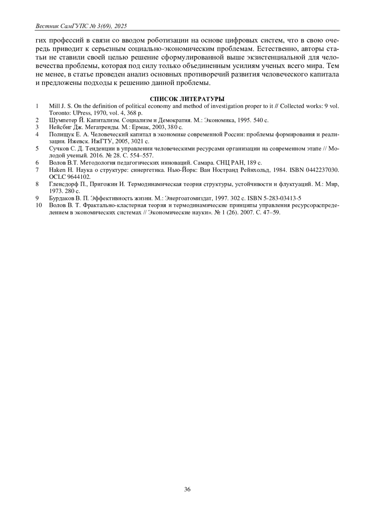 10. Волов В. Т. Фрактально-кластерная теория и термодинамические принципы управления ресурсораспределением в экономических системах // Экономические науки“. № 1 (26). 2007. С. 47-59.