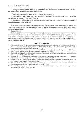 7. Русанов Г. А. Противодействие легализации (отмыванию) преступных доходов: учебник для вузов. Москва: Издательство Юрайт, 2025. 157 с.
