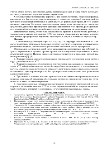 3. Тверецкий А. В. О соотношениях в структуре себестоимости затрат автотранспортных предприятий // Вопросы технических наук: новые подходы к решению актуальных проблем: сборник научных трудов по итогам международной научно-практической конференции. Казань, 2021. № 8. С. 8-15.