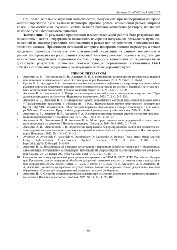 11. Авсиевич Н. А. Способы установки датчиков на рельс при измерении ускорения под действием подвижного состава // Вестник транспорта Поволжья. 2025. № 3 (111). С. 98-103.