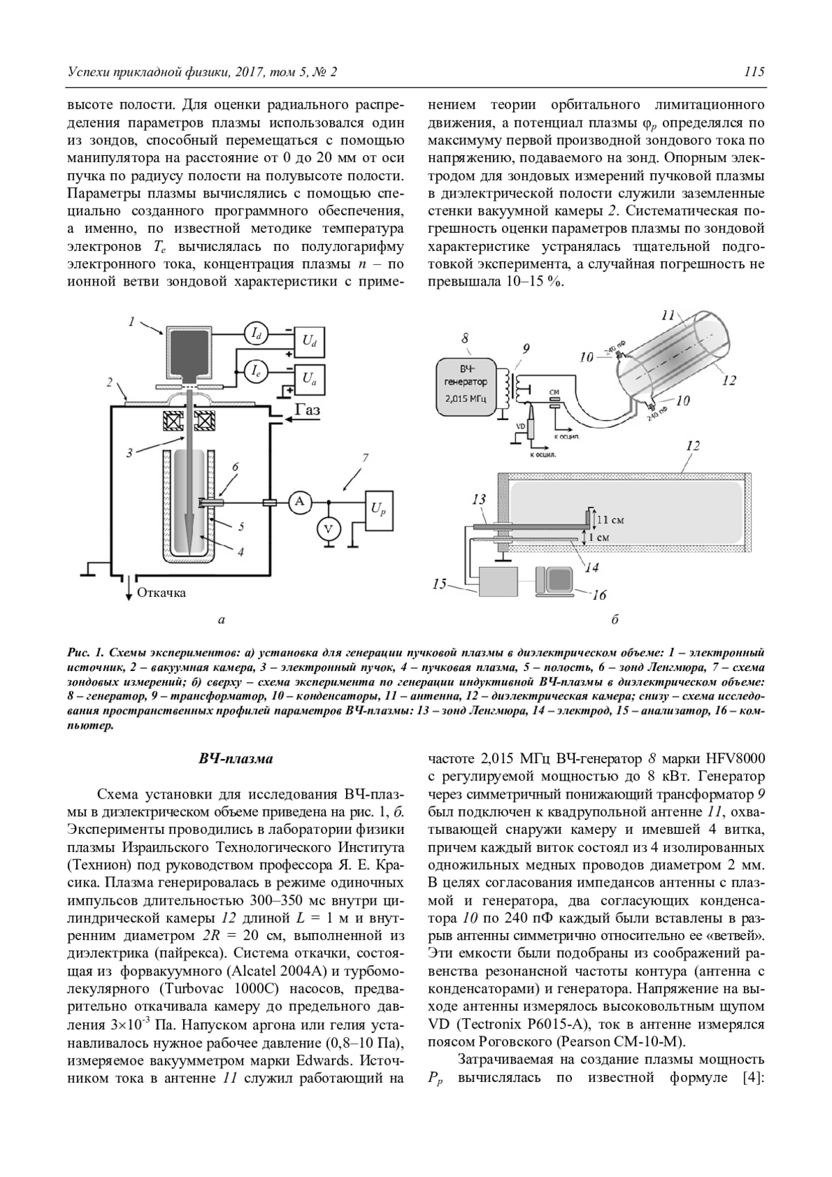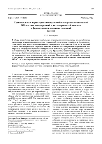 Золотухин Д. Б. Сравнительные характеристики пучковой и индуктивно-связанной ВЧ-плазмы, генерируемой в диэлектрической полости в форвакуумном диапазоне давлений (обзор) 113