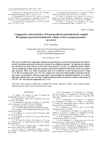 D. B. Zolotukhin Comparative characteristics of beam-produced and inductively coupled RF plasmas generated in dielectric volume at fore-vacuum pressures (a review) 113