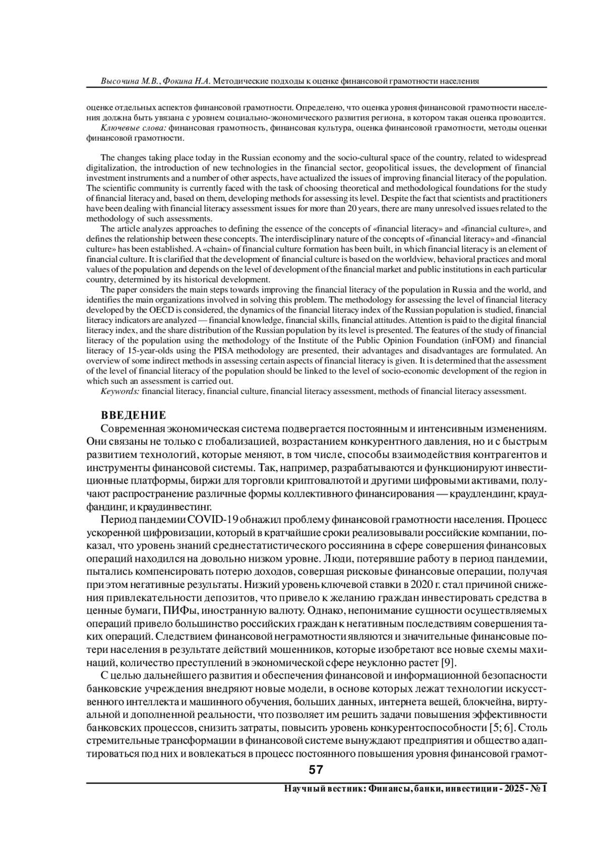Изменения, происходящие сегодня в российской экономике, социокультурном пространстве страны, связанные с повсеместной цифровизацией, внедрением новых технологий в финансовый сектор, геополитическими вопросами, развитием финансовых инструментов инвестирования и рядом других аспектов, актуализировали вопросы повышения финансовой грамотности населения. Перед научным сообществом в настоящее время стоит задача выбора теоретико-методологических оснований изучения финансовой грамотности и на их основе разработка методик оценки ее уровня. Несмотря на то, что вопросами оценки финансовой грамотности ученые и практики занимаются уже более 20 лет, остается много нерешенных вопросов, связанных с методологией проведения таких оценок.