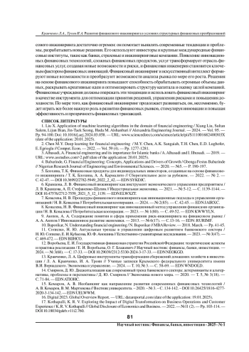 4. Babarinde, G. Financial Engineering: Concepts, Applications and Drivers of Growth / Gbenga Festus Babarinde // Nigerian Research Journal of Engineering and Environmental Sciences. - 2020. - №5. - P. 190-197.