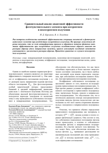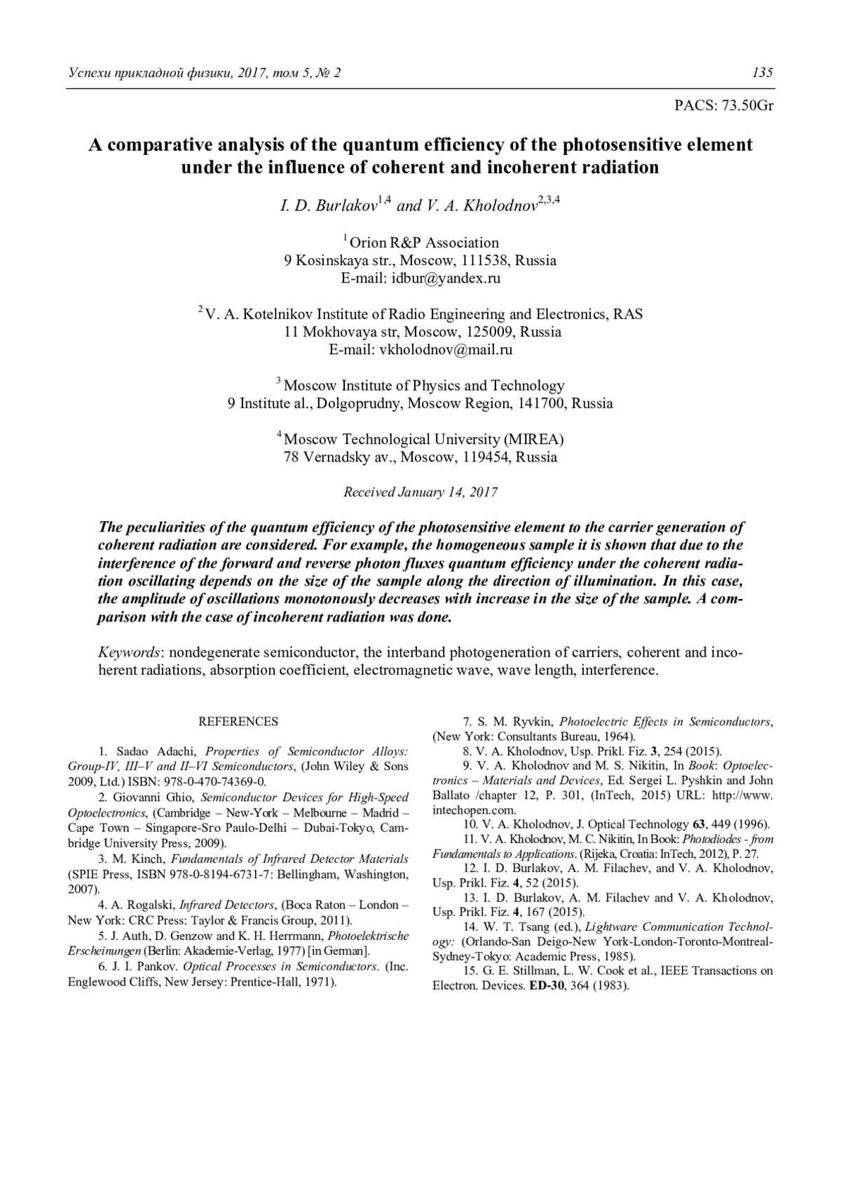 I. D. Burlakov and V. A. Kholodnov A comparative analysis of the quantum efficiency of the photosensitive element under the influence of coherent and incoherent radiation 130
