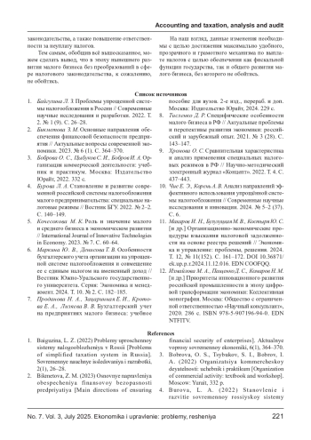 1. Байгузина Л. З. Проблемы упрощенной системы налогообложения в России // Современные научные исследования и разработки. 2022. Т.2. № 1 (9). С. 26-28.