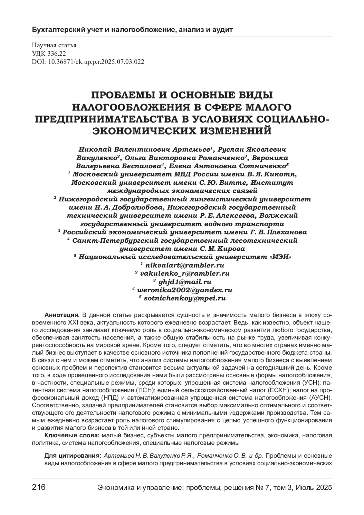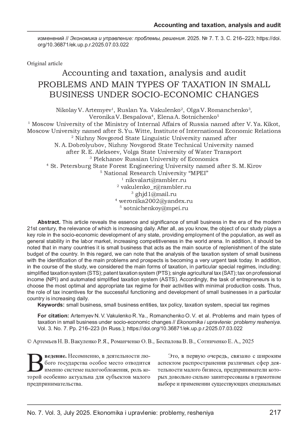 8. Тисленко Д. Р. Специфические особенности малого бизнеса в РФ // Актуальные проблемы и перспективы развития экономики: российский и зарубежный опыт. 2021. № 3 (28). С. 143-147.