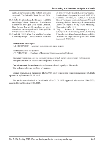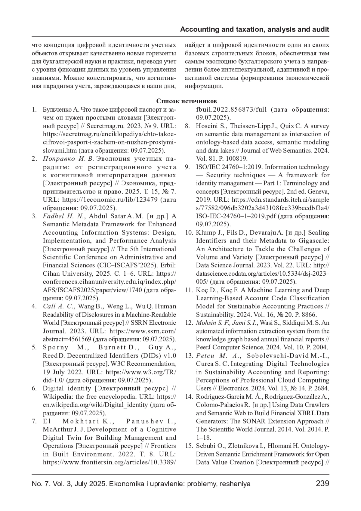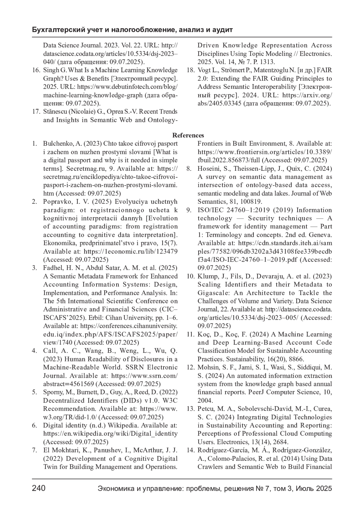 3. Fadhel H. N., Abdul Satar A. M. [и др.] A Semantic Metadata Framework for Enhanced Accounting Information Systems: Design, Implementation, and Performance Analysis [Электронный ресурс] // The 5th International Scientific Conference on Administrative and Financial Sciences (CIC-ISCAFS’2025). Erbil: Cihan University, 2025. С. 1-6. URL: https://conferences.cihanuniversity.edu.iq/index.php/AFS/ISCAFS2025/paper/view/1740 (дата обращения: 09.07.2025).