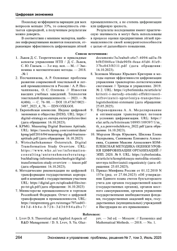 8. Зеленков Михаил Юрьевич Критерии и методы оценки эффективности цифровизации управления транспортно- логистическими системами // Тренды и управление. 2019. № 2. URL: https://cyberleninka.ru/article/n/kriterii-i-metody-otsenki-effektivnosti-tsifrovizatsii-upravleniya-transportnologisticheskimi-sistemami (дата обращения: 25.05.2025).
