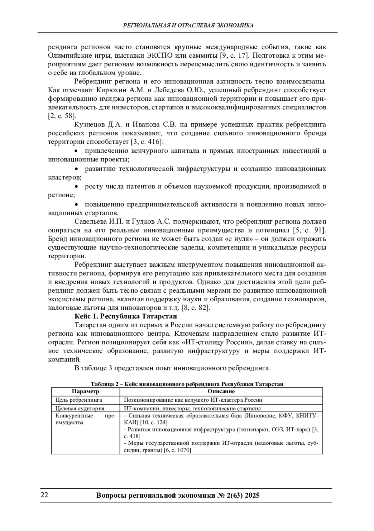 2. Кирюхин А.М., Лебедева О.Ю. Оценка эффективности стратегий ребрендинга региона для стимулирования инновационной деятельности // Инновационное развитие экономики.202.3 № 1(67).С. 54-63.