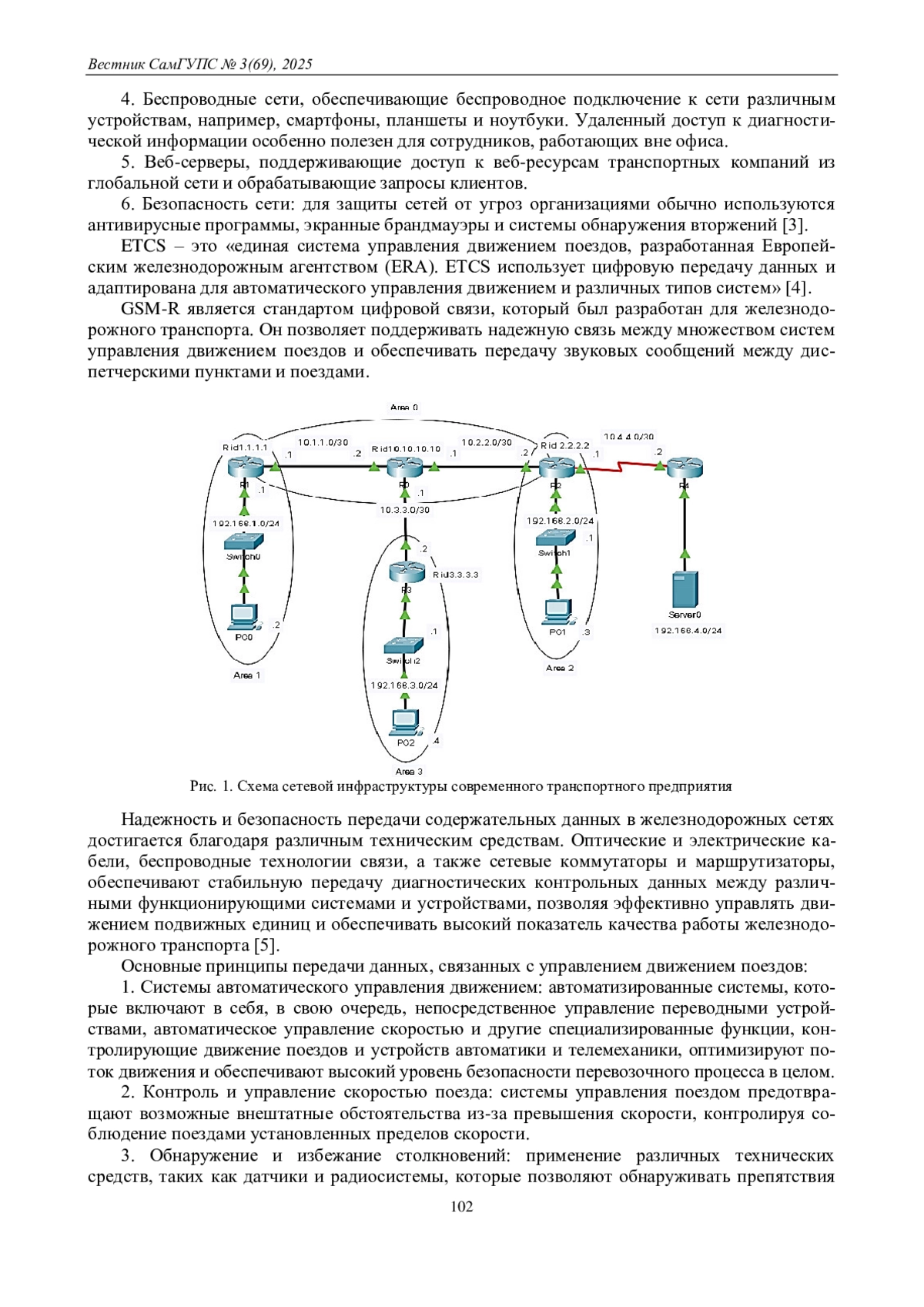 На железнодорожном транспорте для управления движением поездов необходима безопасная передача содержательных данных различных систем и устройств. Сетевая инфраструктура является основой передачи диагностической информации, обеспечивающей непосредственную связь между локальными и центральными системами управления, диспетчерскими пунктами, станциями и поездами Д1, 2].