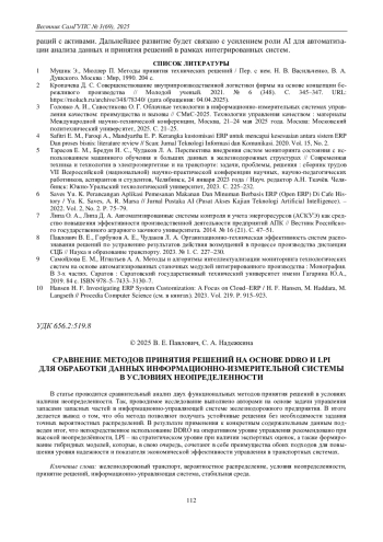 В статье проводится сравнительный анализ двух функциональных методов принятия решений в условиях наличия неопределенности. Так, проводимое исследование выполнено авторами на основе задачи управления запасами запасных частей в информационно - управляющей системе железнодорожного предприятия. В итоге делается вывод о том, что оба метода позволяют получать устойчивые решения без необходимости задания точных вероятностных распределений. В результате применения к конкретным содержательным данным подведен итог, что непосредственное использование DDRO на оперативном уровне управления рекомендовано при высокой неопределённости, LPI - на стратегическом уровне при наличии экспертных оценок, а также формирование гибридных моделей, которые, в свою очередь, сочетают в себе преимущества обоих подходов для повышения уровня надежности и показателя экономической эффективности управления в транспортных системах.