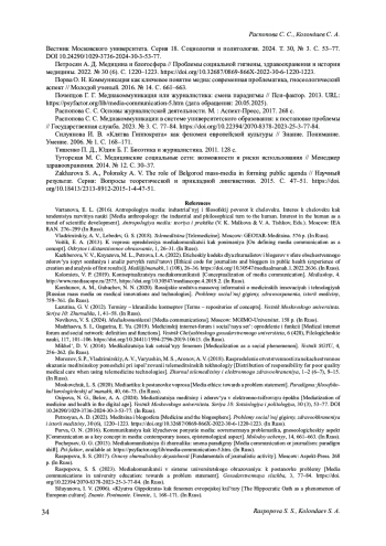 13. Осипова Н. Г., Белов А. А. Медиатизация медицины и здоровья в электронно-цифровую эпоху.