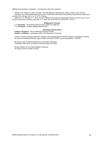 21. Тишенко П. Д., Юдин Б. Г. Биоэтика и журналистика. 2011. 128 с.