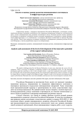 2. Дорошенко Ю.А. Инновационная инфраструктура как драйвер развития региона // Экономический вектор. 2021. № 4(27). С. 87-92. EDN: FZJLVP