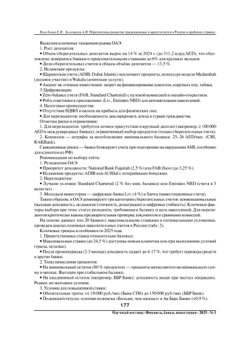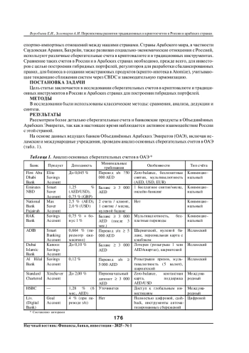 В статье приведен анализ основных сберегательных счетов в Объединённых Арабских Эмиратах. Дан анализ криптосберегательных счетов в Арабских странах. Проведен анализ основных накопительных счетов в России, анализ криптосберегательных счетов в России. Дано сравнение доходности и рисков. Представлены рекомендации для инвесторов в выборе стратегии в России и ОАЭ. Рассмотрен сравнительный анализ сберегательных счетов в криптовалюте и традиционных инструментов в России и Арабских странах по ключевым критериям доходности, рисков, регуляторной среды, включающий рекомендаций для инвесторов.