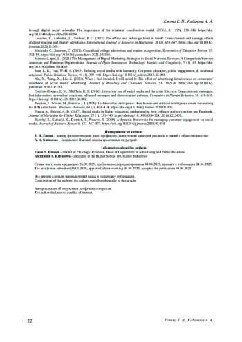 14. Королькова Е. Д. Особенности рекламного продвижения образовательных услуг // Вестник Хакасского государственного университета им. Н. Ф. Катанова. 2018. № 26. С. 40-42. EDN: ZAYGHJ