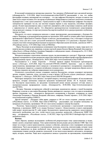 8. Ниязгулова А. А., Мельник Г. С. Философия трансгуманизма в медийном дискурсе // Гуманитарный вектор. 2022. Т. 17, № 2. С. 143-153. DOI: 10.21209/1996-7853-2022-17-2-143-153 EDN: CAHTXA