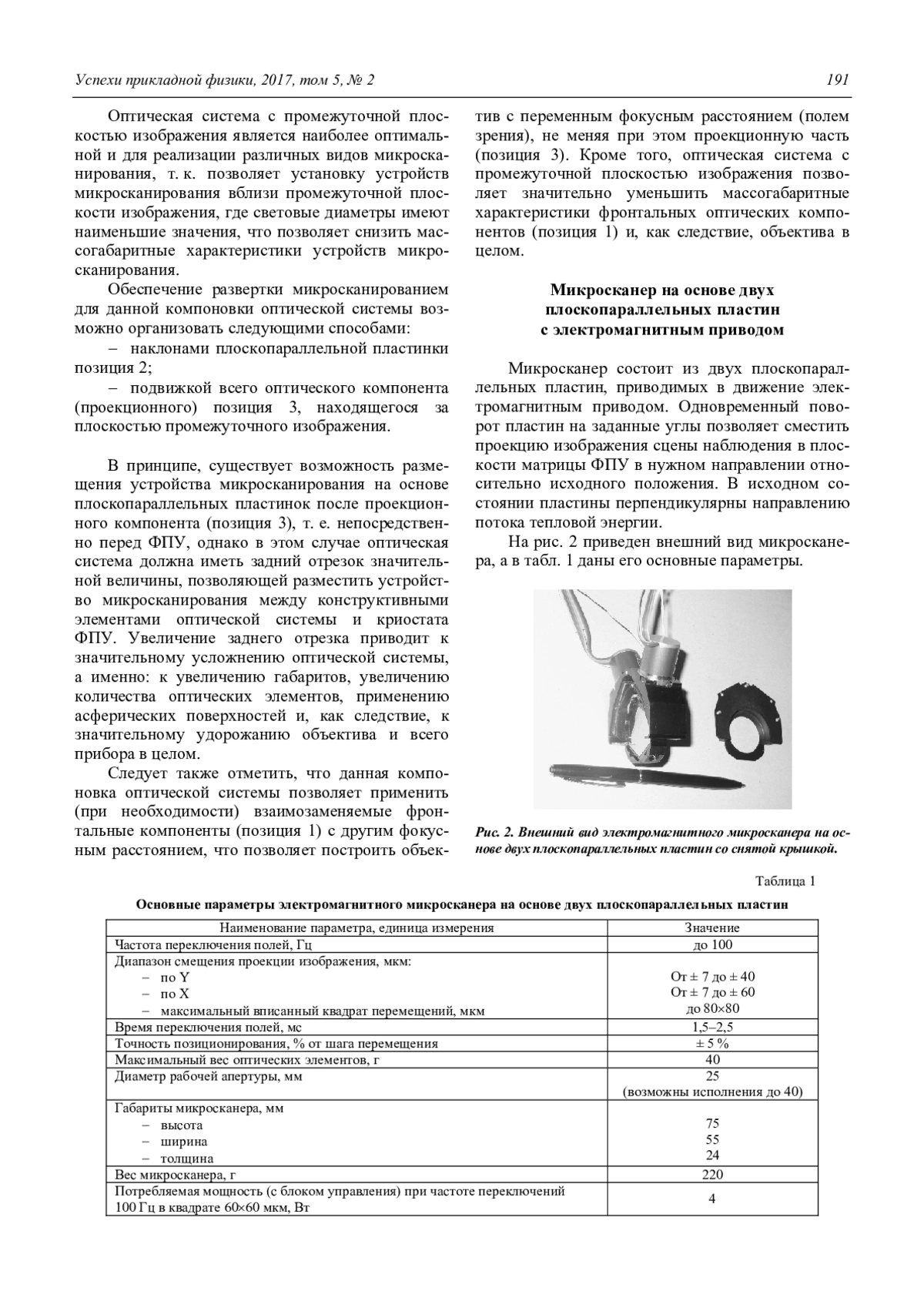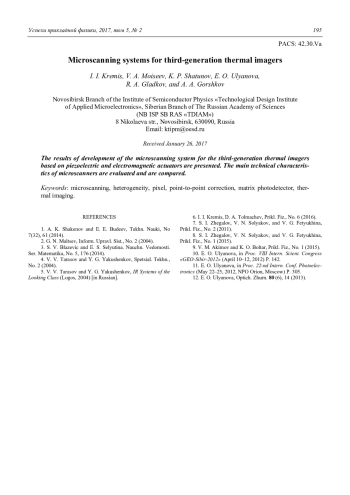Кремис И. И., Моисеев В. А., Шатунов К. П., Ульянова Е. О., Гладков Р. А., Горшков А. А. Системы микросканирования для тепловизоров третьего поколения 189