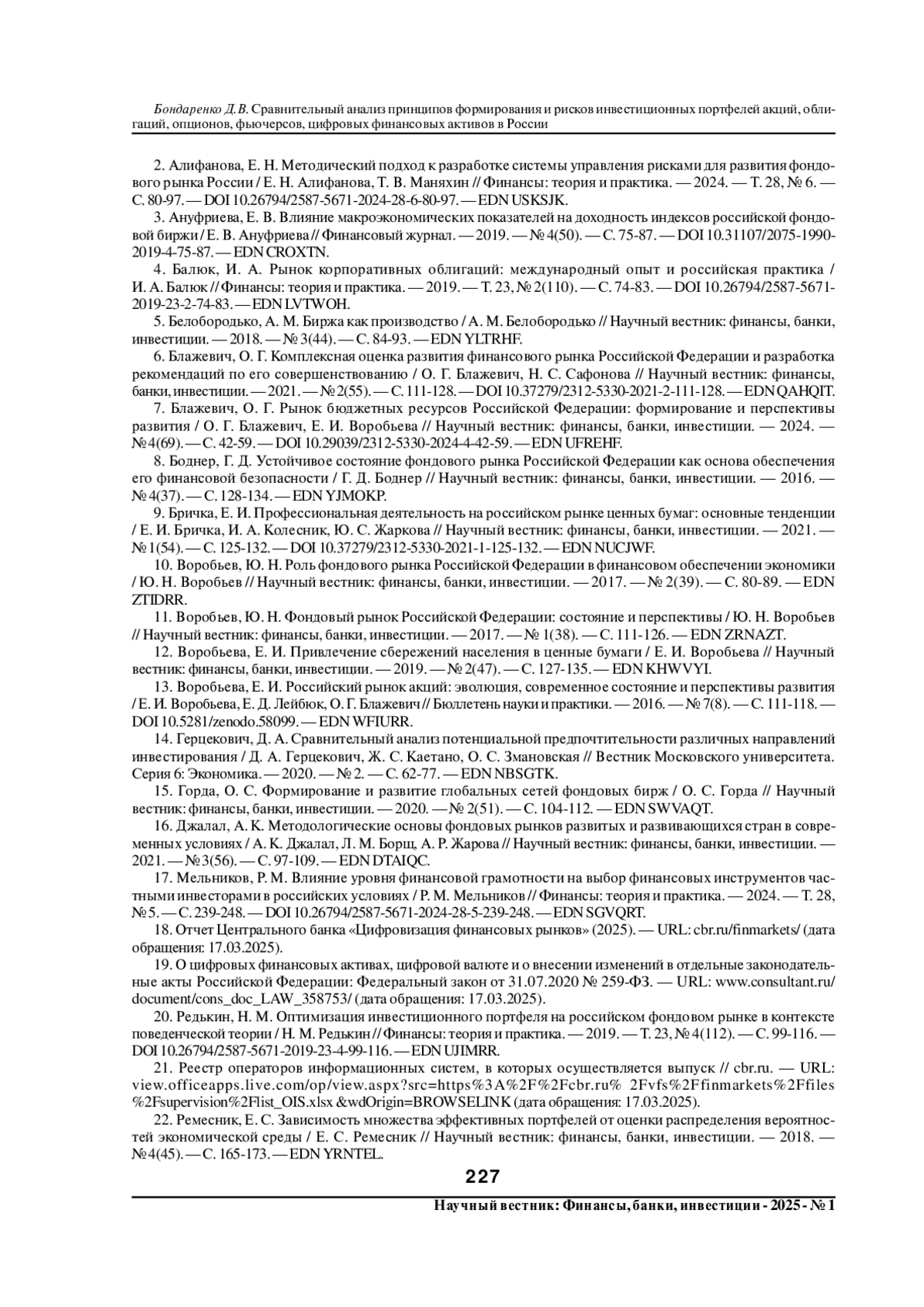 16. Джалал, А. К. Методологические основы фондовых рынков развитых и развивающихся стран в современных условиях / А. К. Джалал, Л. М. Борщ, А. Р. Жарова // Научный вестник: финансы, банки, инвестиции. - 2021. - № 3(56). - С. 97-109. EDN: DTAIQC