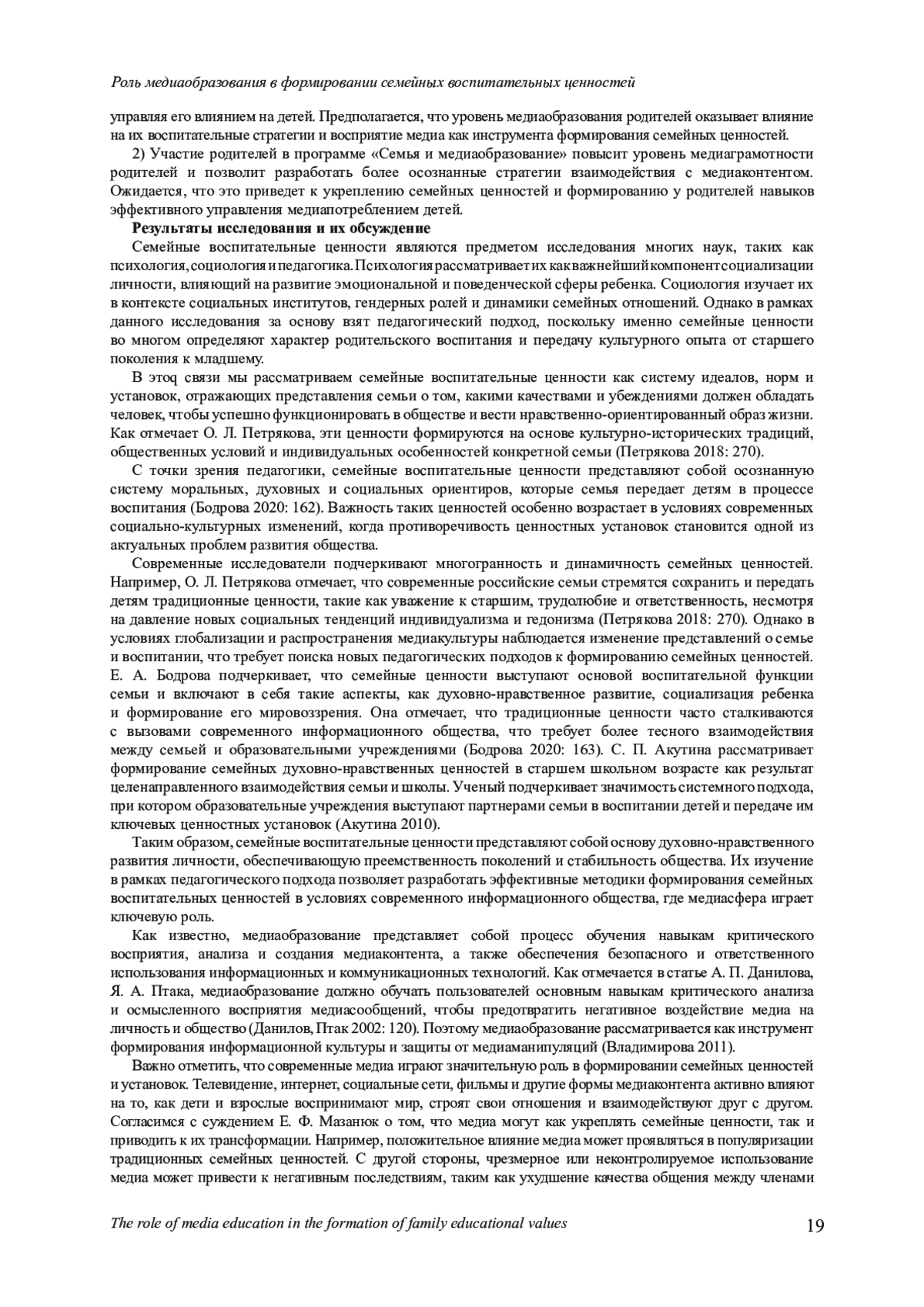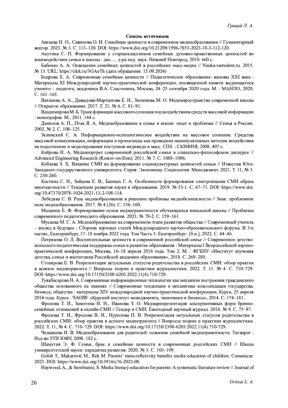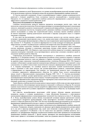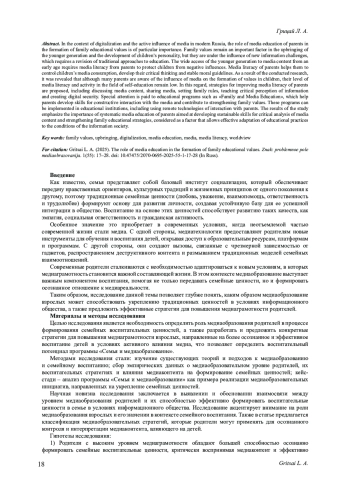 1. Автаева Н. О., Савинова О. Н. Семейные ценности в современном медиаобразовании // Гуманитарный вектор. 2023. № 3. С. 113-120. https://www.. DOI: 10.21209/1996-7853-2023-18-3-112-120 EDN: EVUXEV