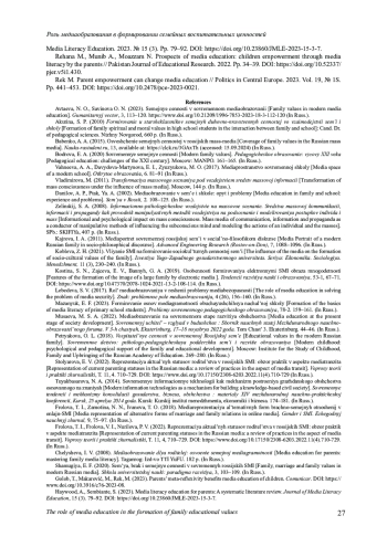 25. Rehana M., Munib A., Moazzam N. Рrospects of media education: children empowerment through media literacy by the parents // Pakistan Journal of Educational Research. 2022. Рp. 34-39. DOI: 10.52337/pjer.v5i1.430 EDN: NDWWNO