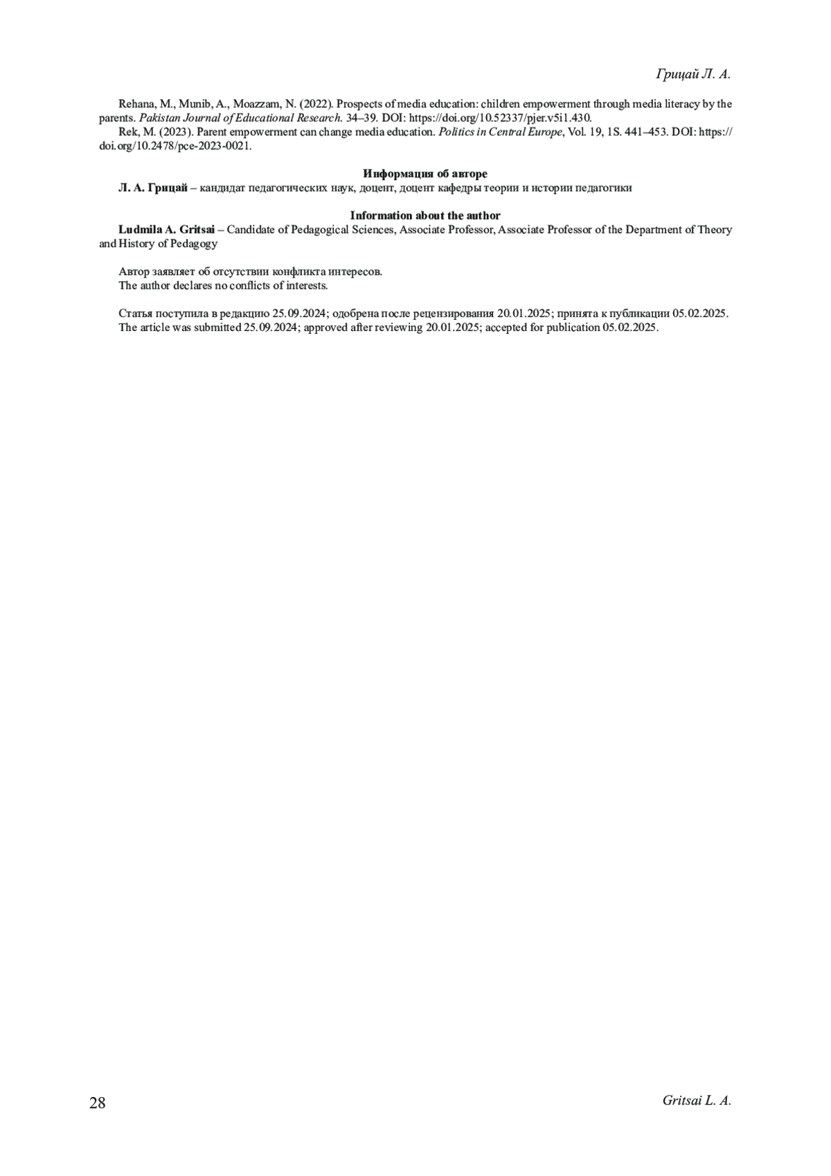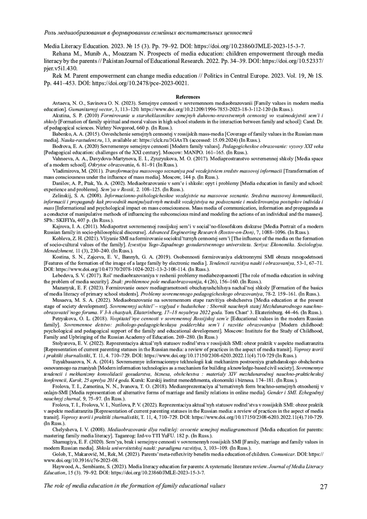 26. Rek M. Parent empowerment can change media education // Politics in Central Europe. 2023. Vol. 19, № 1S. Рp. 441-453. DOI: 10.2478/pce-2023-0021 EDN: QNHKPJ