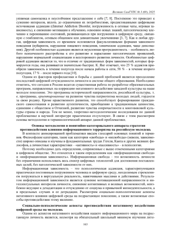 6. Колесников В. Н., Мельник Ю. И., Теплова Л. И. Интернет-активность и проблемное использование интернета в юношеском возрасте // Национальный психологический журнал. 2019. Т. 1. № 1 (33). С. 34-46.
