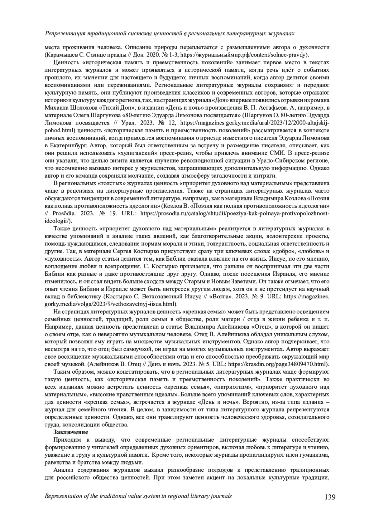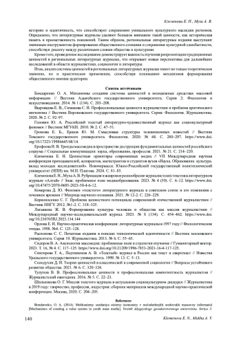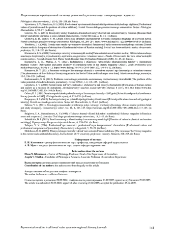 10. Латышева Ж. В. Формирование культуры человека и общества как миссия журналистики // Международный научно-исследовательский журнал. 2023. № 8 (134). С. 454-462. https://www. DOI: 10.23670/IRJ.2023.134.144 EDN: PJNOYK