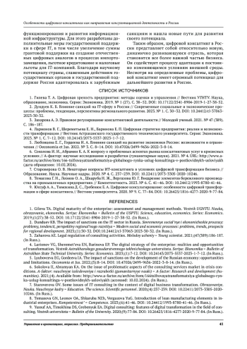 7. Староверова О. В. Некоторые вопросы ИТ-консалтинга в условиях цифровой трансформации бизнеса // Образование. Наука. Научные кадры. 2020. V 4. С. 237-239. DOI: 10.22411/2073-3305-2020-10246 EDN: MWOJXL