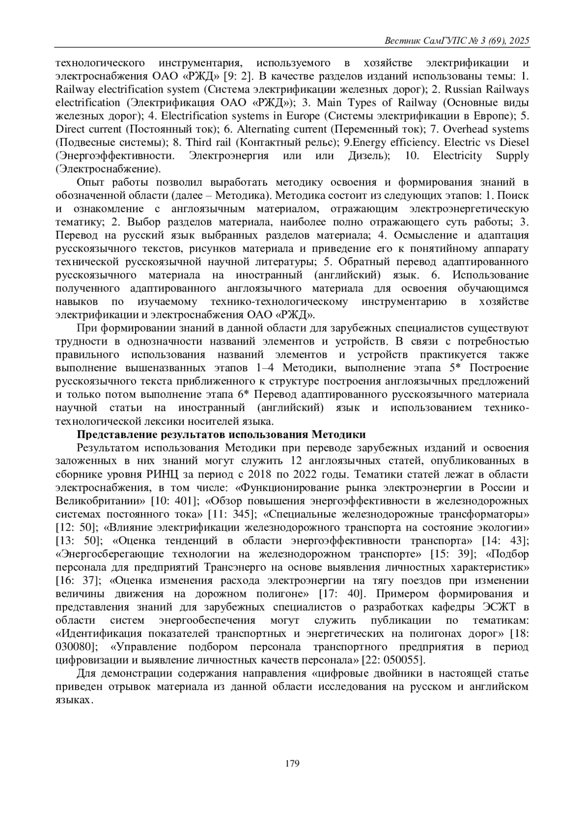 8. Анализ потенциала применения сквозных цифровых технологий в системе тягового электроснабжения электрифицированных железных дорог / М. А. Гаранин, С. А. Фроленков, Т. С. Максимова // Вестник транспорта Поволжья. 2023. № 1 (97). С. 19-27.