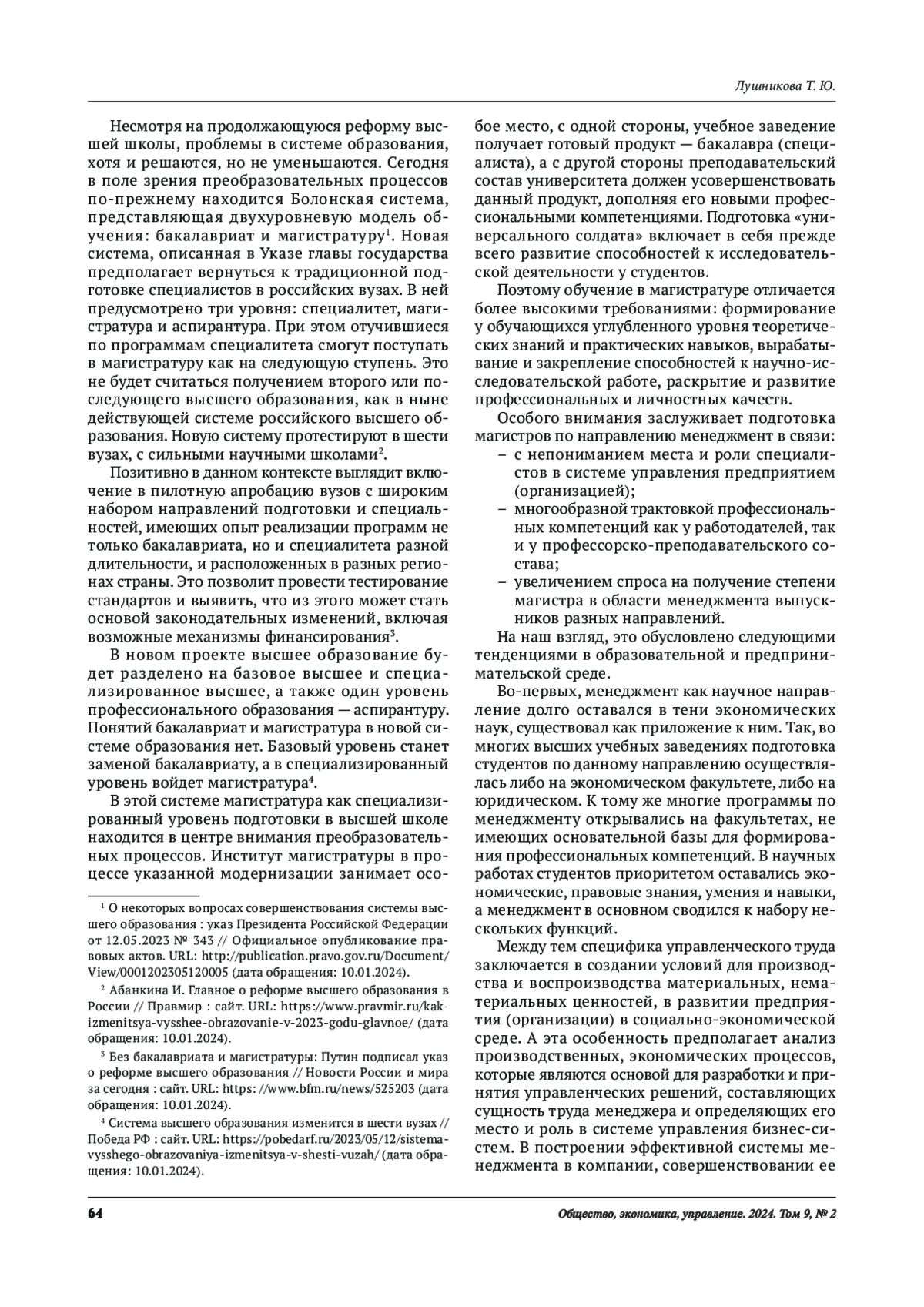 1. Демитько Е. В., Тринадцатко О. А. Особенности и возможности института магистратуры в системе высшего образования // Современные проблемы науки и образования. 2020. № 5. URL: https://science-education.ru/ru/article/view?id=30160 (дата обращения: 10.01.2024).
