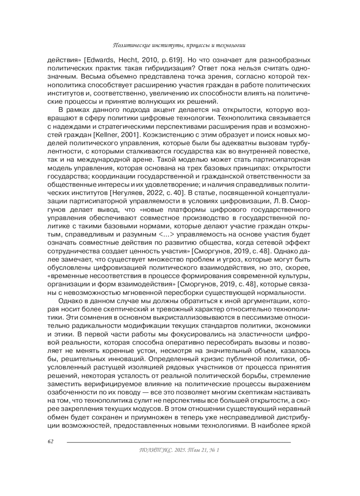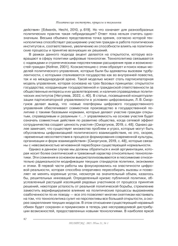 48. Smorgunov L.V. Participatory governability under digitalization conditions: network effect and institutions. The Caspian Region: Politics, Economics, Culture. 2019. Vol 4 (61). P. 43-49. (In Russian).