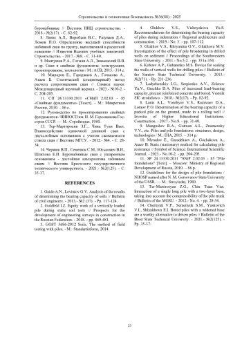 8. Ланис А.Л., Воробьев В.С., Разуваев Д.А., Ломов П.О. Определение несущей способности набивной сваи по грунту, выполненной в раскатной скважине // Известия Высших учебных заведений. Строительство. - 2017.- №9. - С. 31-40.