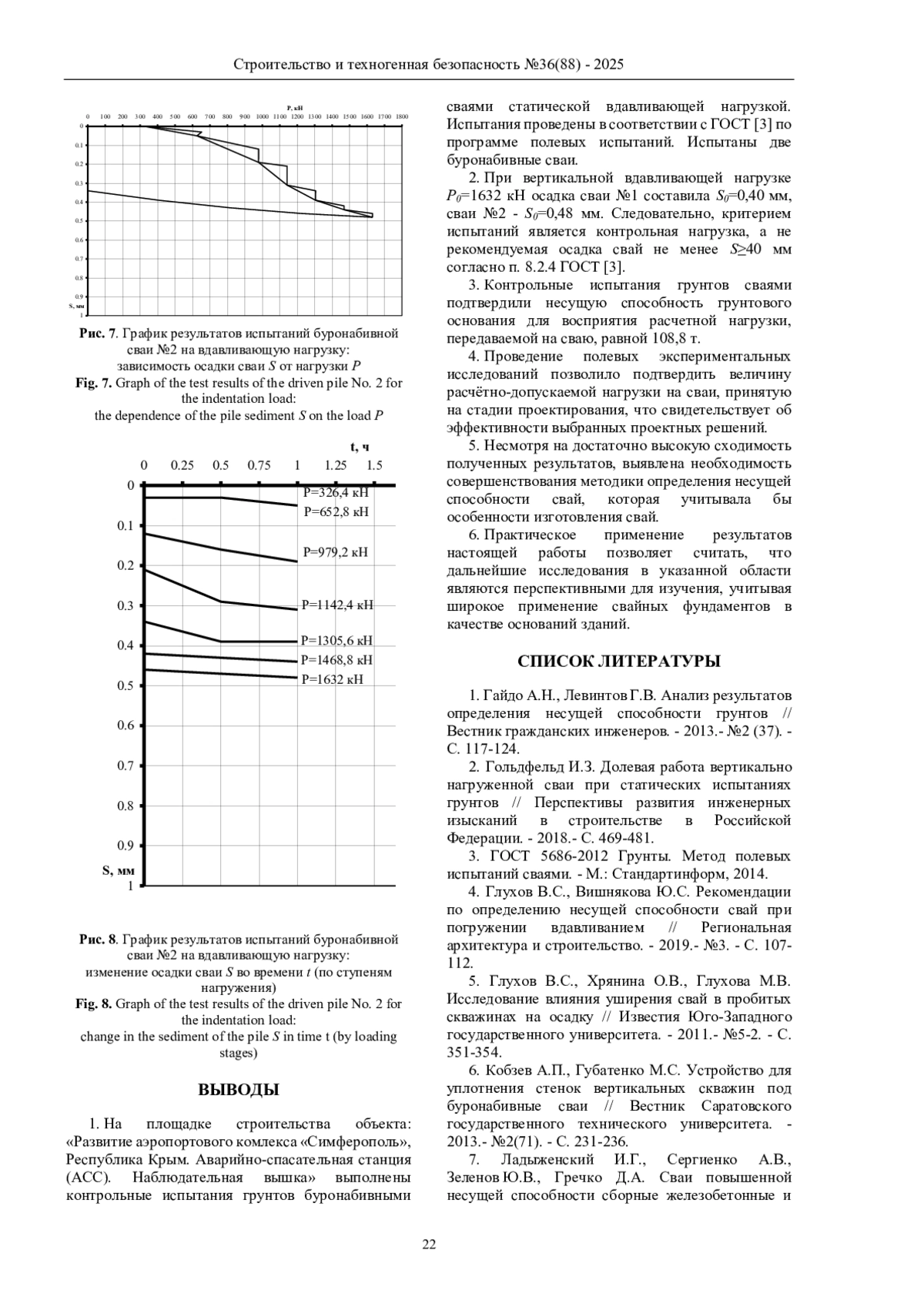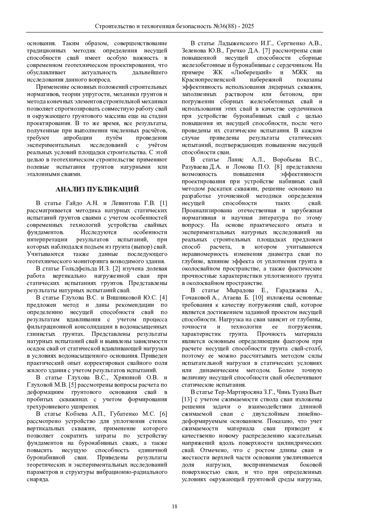 7. Ладыженский И.Г., Сергиенко А.В., Зеленов Ю.В., Гречко Д.А. Сваи повышенной несущей способности сборные железобетонные и буронабивные // Вестник НИЦ строительство. - 2018.- №2(17). - С. 82-92. EDN: YWRAOF
