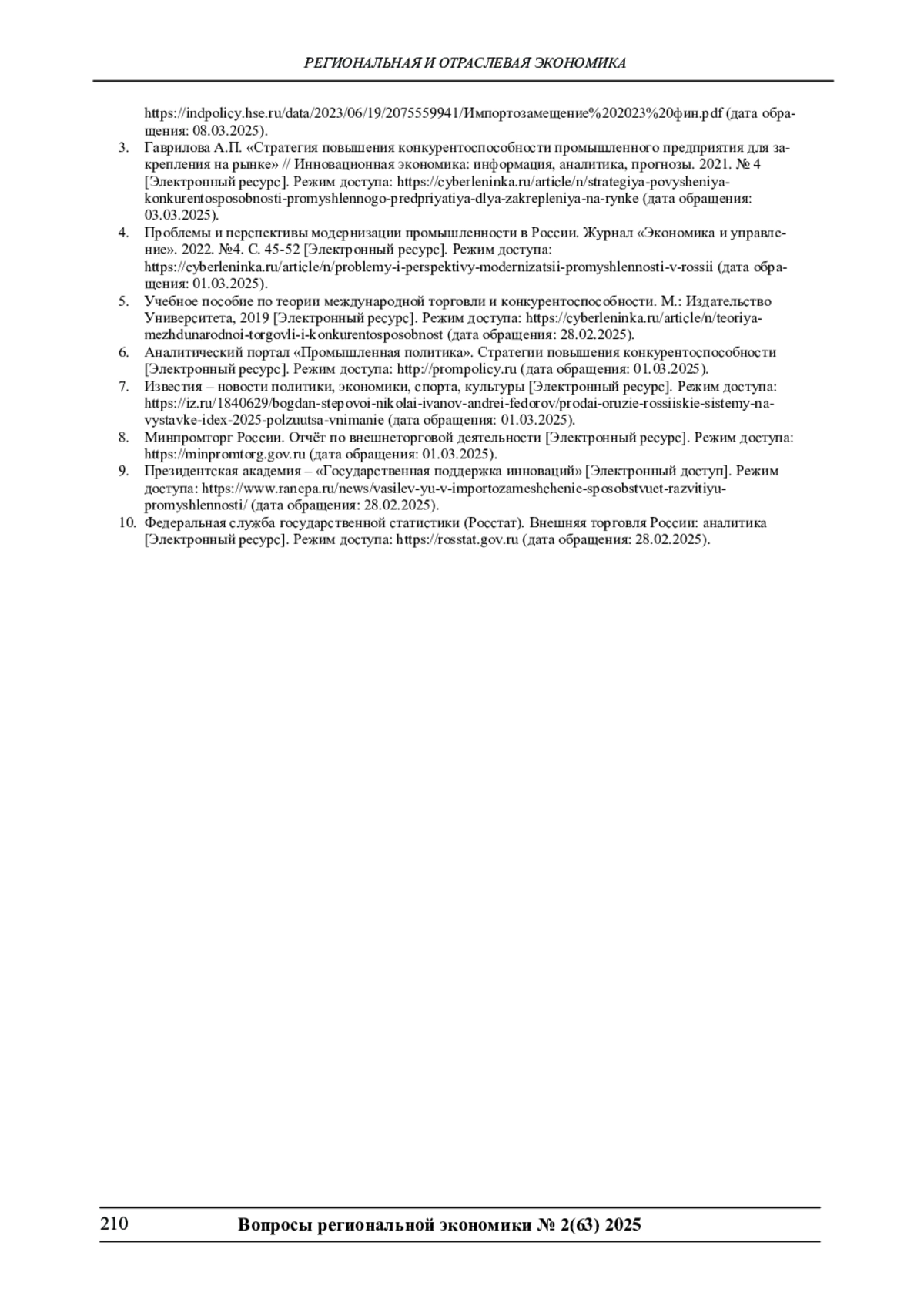 4. Проблемы и перспективы модернизации промышленности в России. Журнал “Экономика и управление”.2022.№4. С. 45-52 [Электронный ресурс]. Режим доступа: https://cyberleninka.ru/article/n/problemy-i-perspektivy-modernizatsii-promyshlennosti-v-rossii (дата обращения: 01.03.2025).