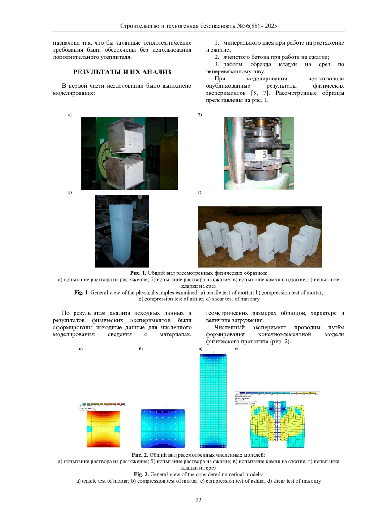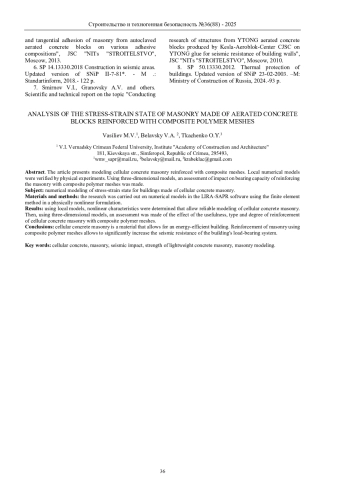 Предмет исследования: напряженно-деформированное состояние численных моделей зданий из кладки из ячеистых бетонов.