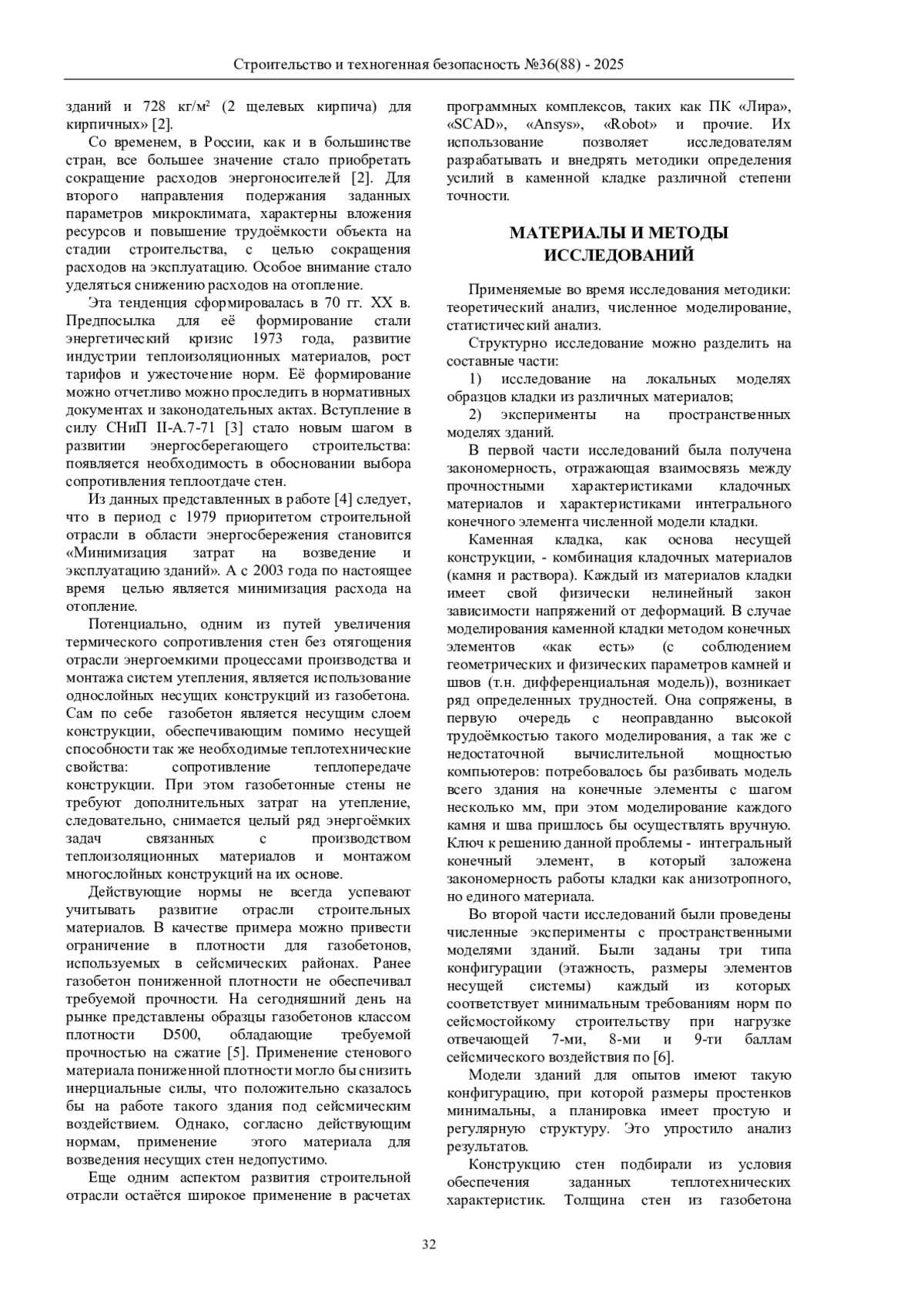 Данное исследование расширяет границы применения одного из самых перспективных и востребованных материалов – ячеистых бетонов (в том числе автоклавных газобетонов). В работе рассматриваются возможные пути снижения энергоемкости строительной отрасли за счет снижения расхода энергии и материалов на протяжении всего жизненного цикла здания. Так же рассмотрены и уточнены методики моделирования и прочностных расчетов каменных зданий при сейсмическом воздействии.