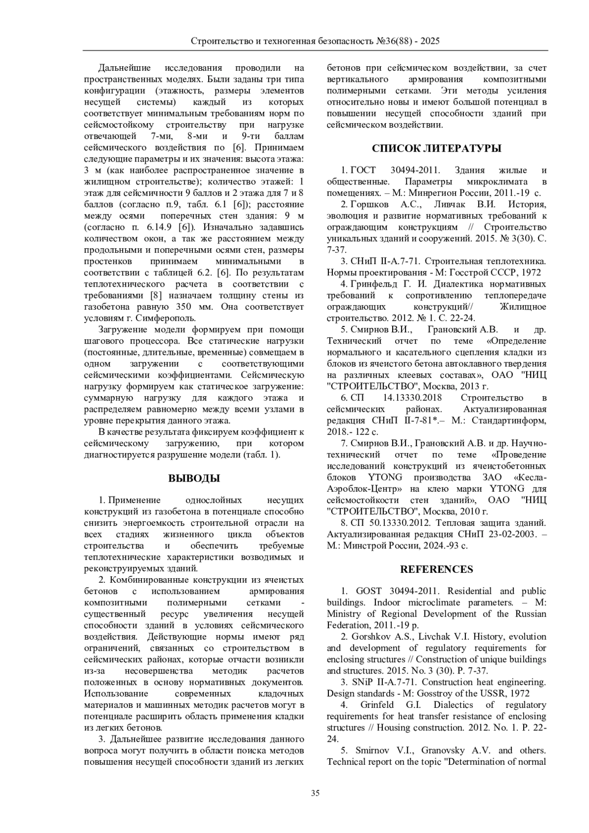 7. Смирнов В.И., Грановский А.В. и др. Научно-технический отчет по теме “Проведение исследований конструкций из ячеистобетонных блоков YTONG производства ЗАО “Кесла-Аэроблок-Центр” на клею марки YTONG для сейсмостойкости стен зданий”, ОАО “НИЦ “СТРОИТЕЛЬСТВО”, Москва, 2010 г.