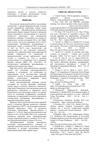 12. Bhagath Singh G.V.P., Subramaniam Kolluru V.L. Production and characterization of low-energy Portland composite cement from post-industrial waste // Journal of Cleaner Production. - 2019. - Vol. 239. - 118024. DOI: 10.1016/j.jclepro.2019.118024