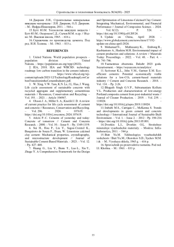 7. Huang G., Liu Y., Benn T., Luo L., Xie T., Zhuge Y. A Comprehensive Framework for the Design and Optimisation of Limestone-Calcined Clay Cement: Integrating Mechanical, Environmental, and Financial Performance // Journal of Composites Science. - 2024. - Vol. 8(12). - P. 524. DOI: 10.3390/jcs8120524 EDN: GSIVPL