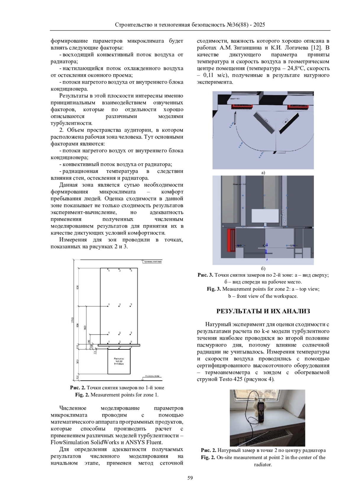 Предмет исследования: параметры микроклимата, их сходимость при натурном эксперименте и применении k-e модели турбулентного течения.